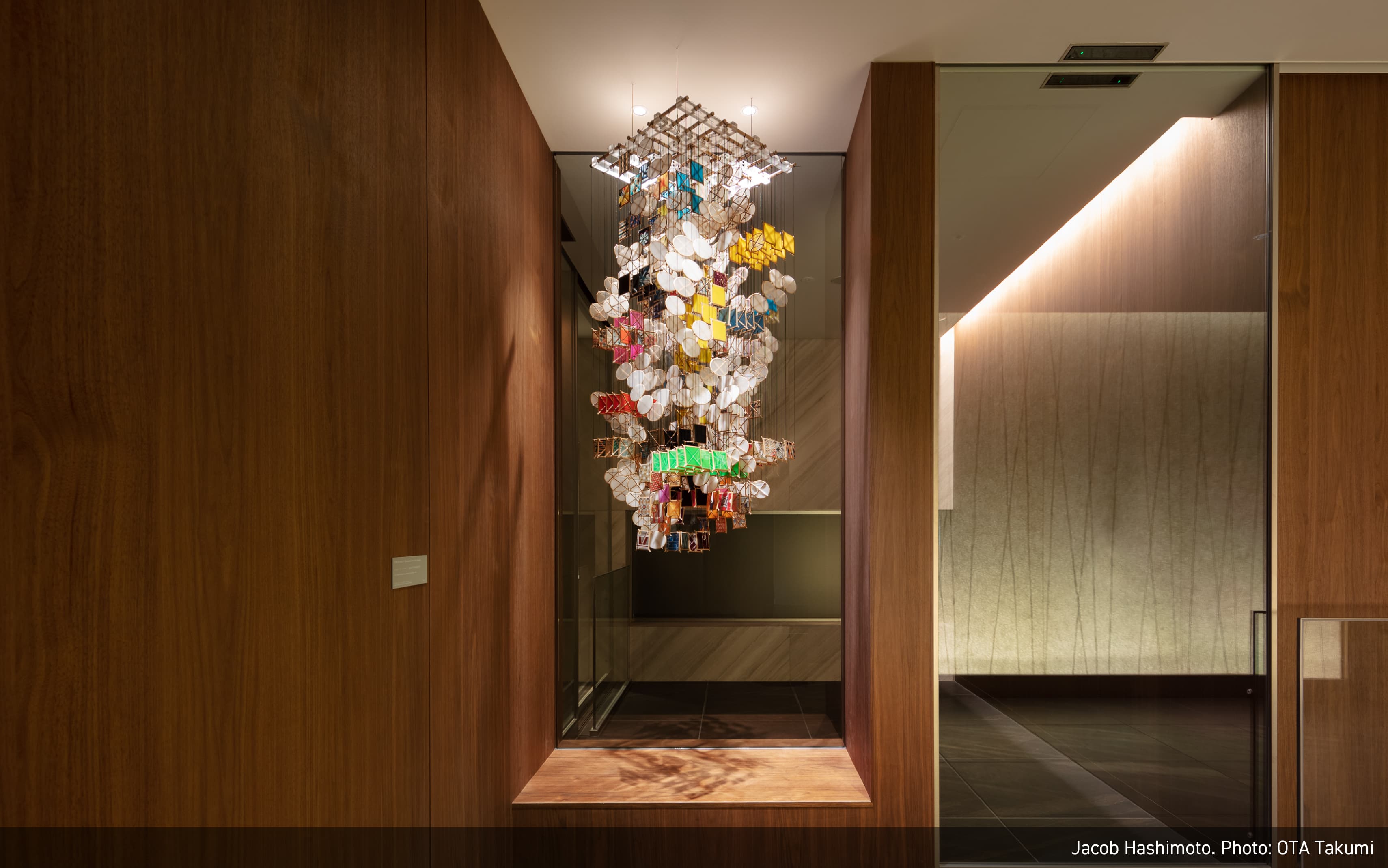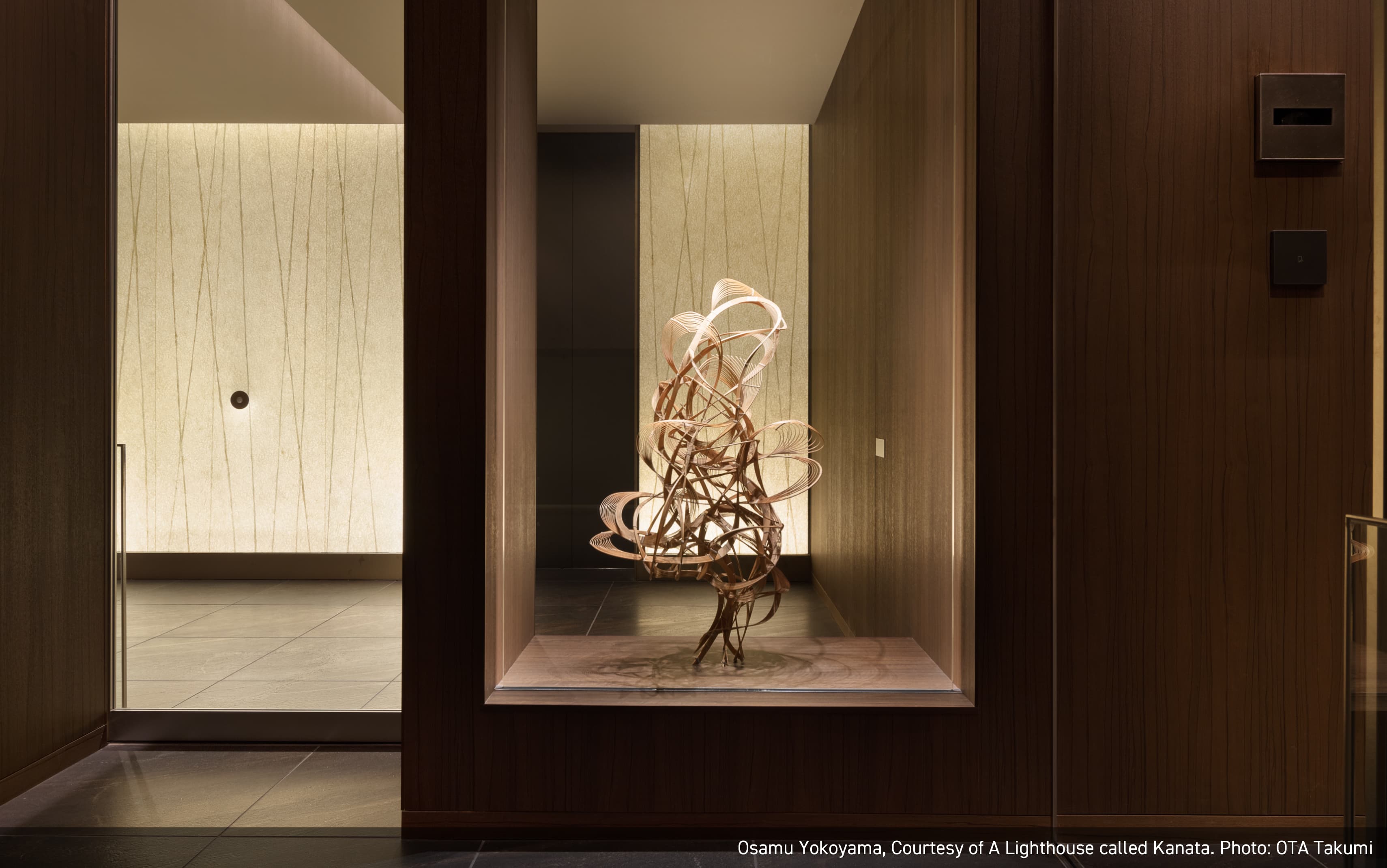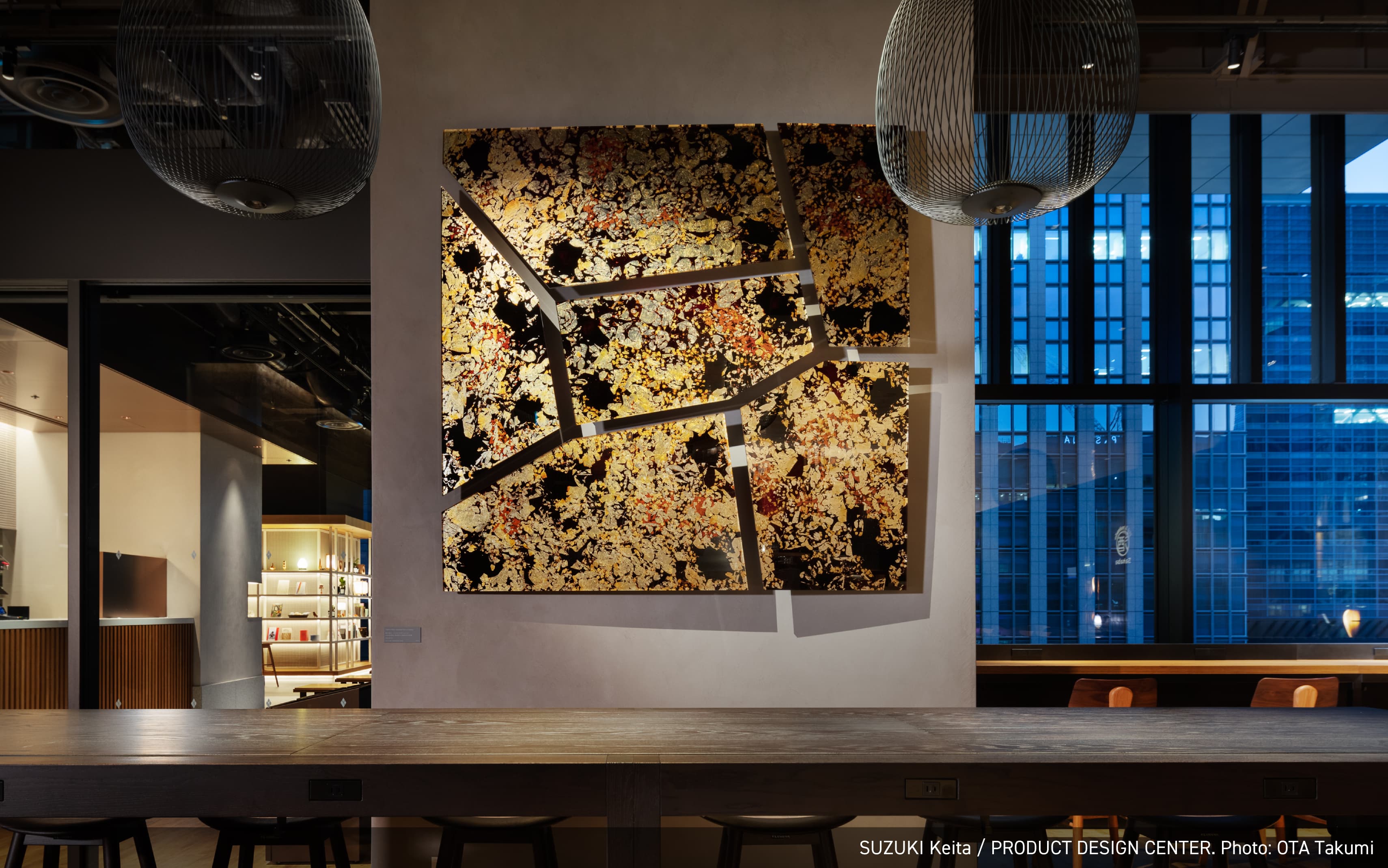 江戸時代からの歴史的なコンテクストとこれからの時代をつなぐように、陶、竹、漆、日本画といった伝統的な素材と技術の上に、新しい表現を模索する作家を意識的に起用、また、建物の江戸切子をモチーフとした意匠などとの連続性を意識し、幾何学模様を取り入れた作品を複数採用しました。そして東アジアの思索の伝統を下敷きに、自然素材や自然の力をモチーフにした作品を含めています。それは持続可能な社会の実現を願う意志の表明でもあります。