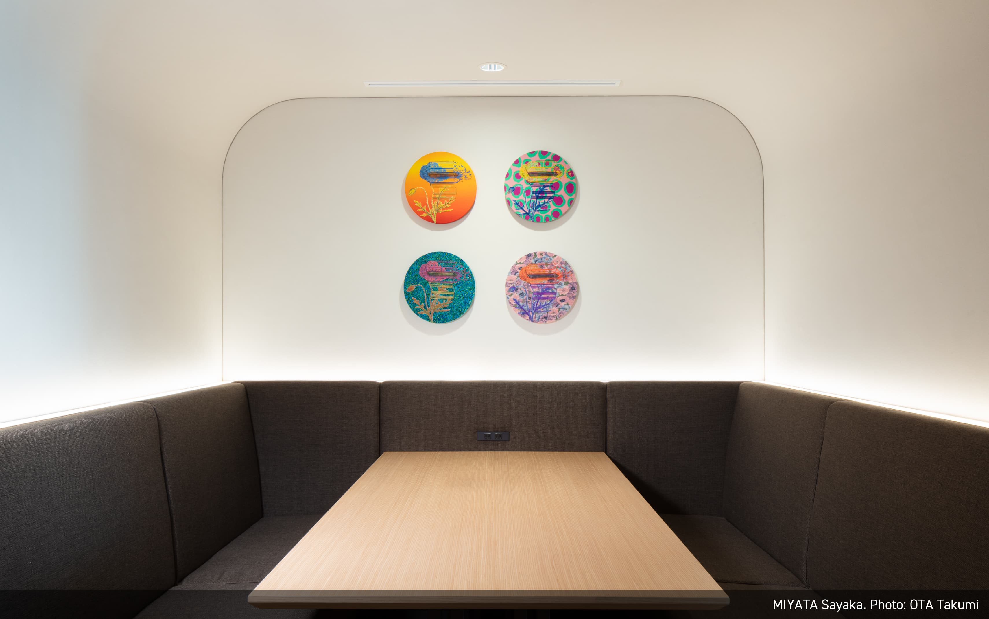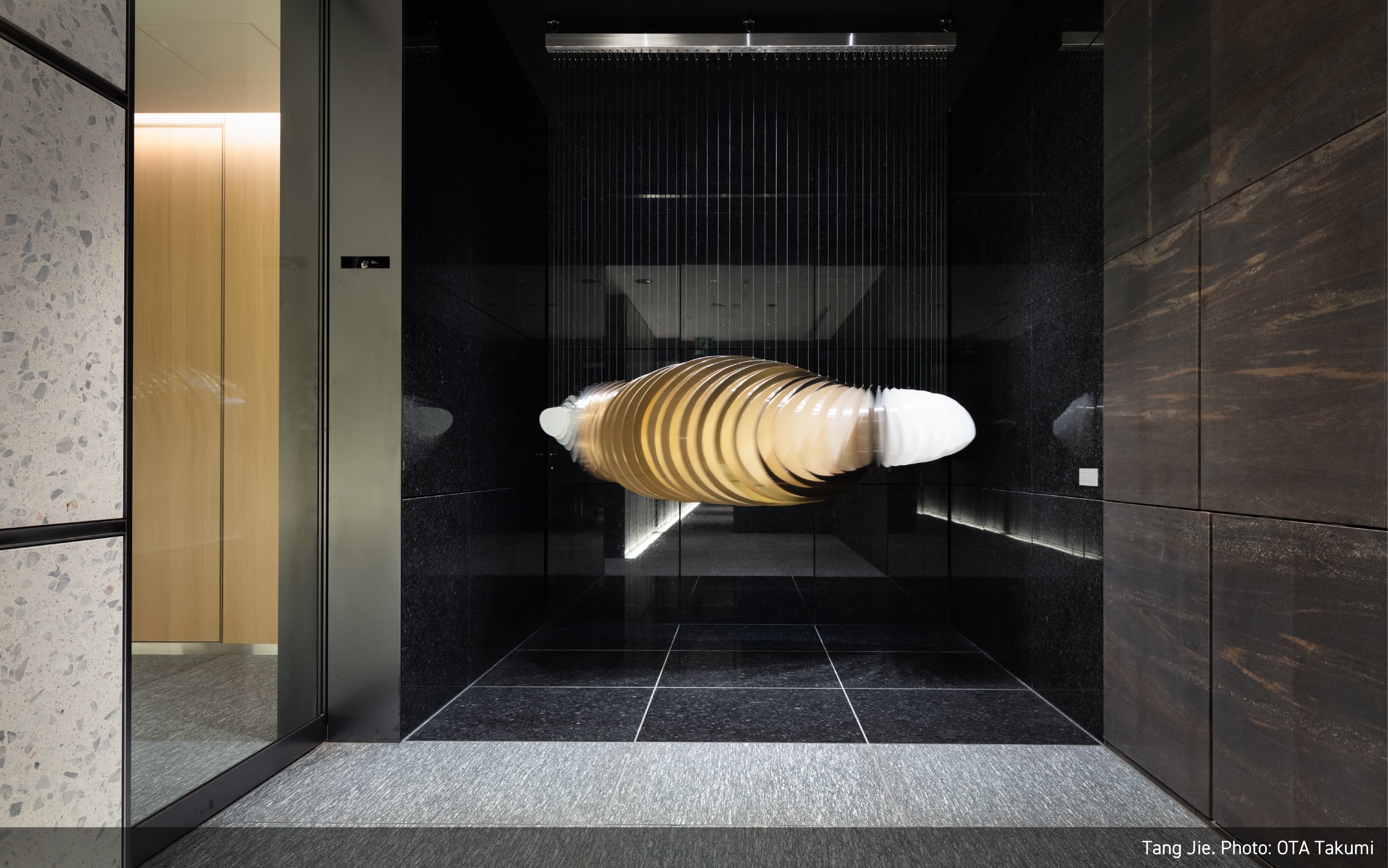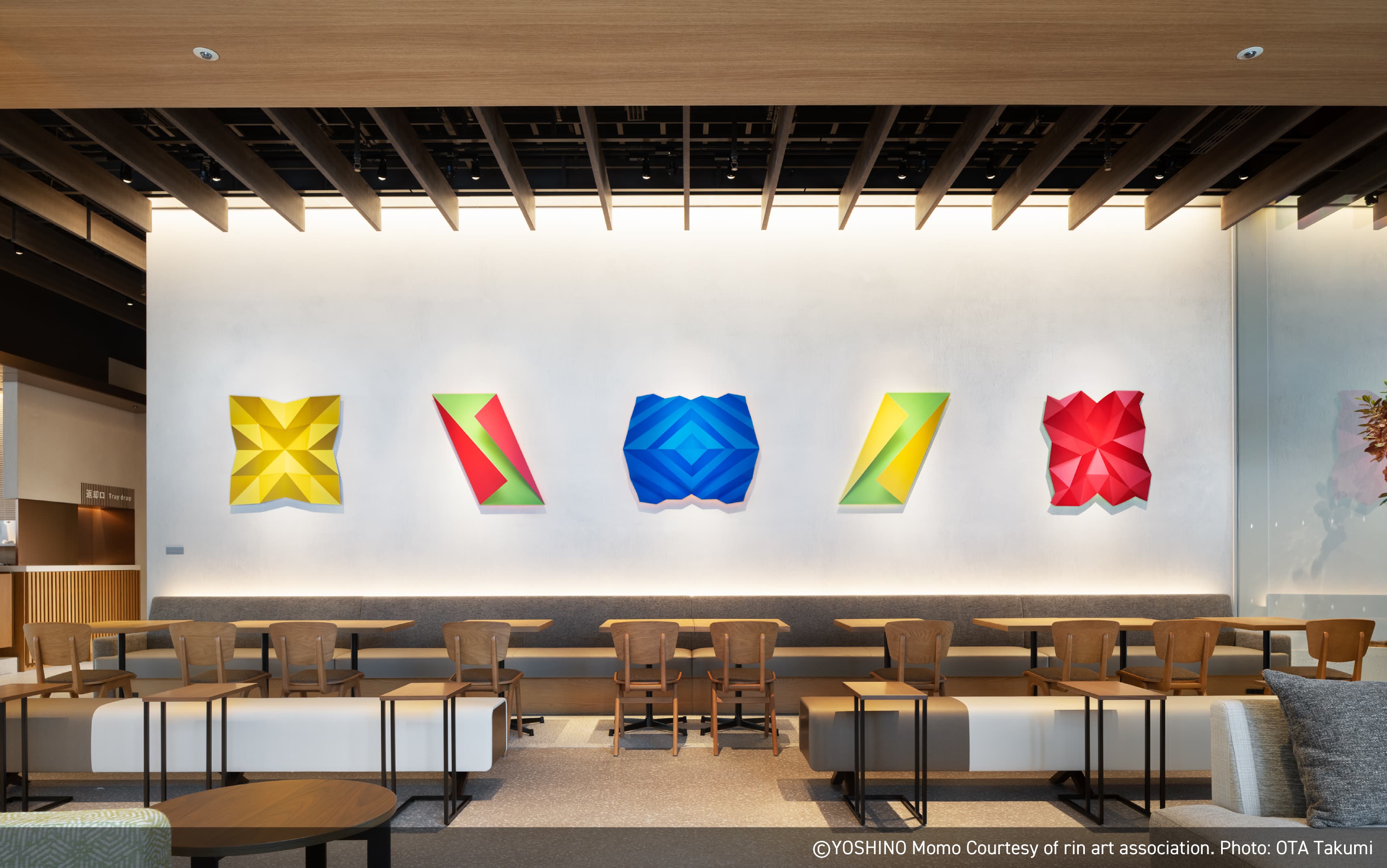 江戸時代からの歴史的なコンテクストとこれからの時代をつなぐように、陶、竹、漆、日本画といった伝統的な素材と技術の上に、新しい表現を模索する作家を意識的に起用、また、建物の江戸切子をモチーフとした意匠などとの連続性を意識し、幾何学模様を取り入れた作品を複数採用しました。そして東アジアの思索の伝統を下敷きに、自然素材や自然の力をモチーフにした作品を含めています。それは持続可能な社会の実現を願う意志の表明でもあります。